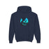 A cozy and practical youth heavy blend hooded sweatshirt perfect for tcg and gaming enthusiasts. This hoodie features a spacious pouch pocket to keep hands warm and store essentials. Made from a blend of 50% cotton and 50% polyester, this hoodie offers a comfortable fit and is ideal for printing designs. Suitable for children, this hoodie is made in Honduras and meets various compliance requirements. Embroidery decoration options available on the left or center chest.